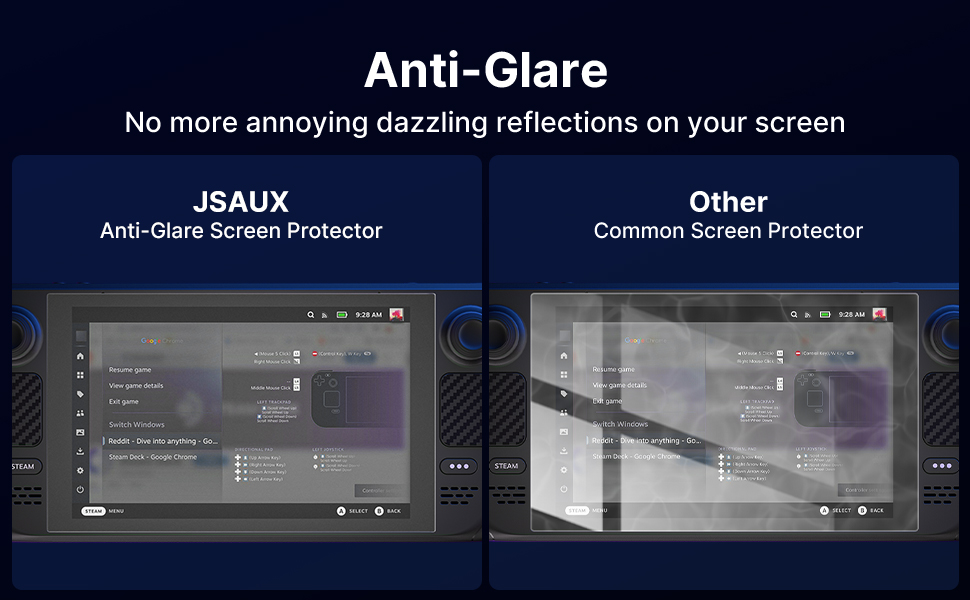 JSAUX premium anti-glare matte texture finish removes annoying harsh reflections, allowing you to see the screen clearly even under light. Specifically designed for Valve Steam Deck Gaming Console. Also, the package will come with a guiding frame that allows you to easily install the screen protector to your Steam Deck without having to align the edges repeatedly.