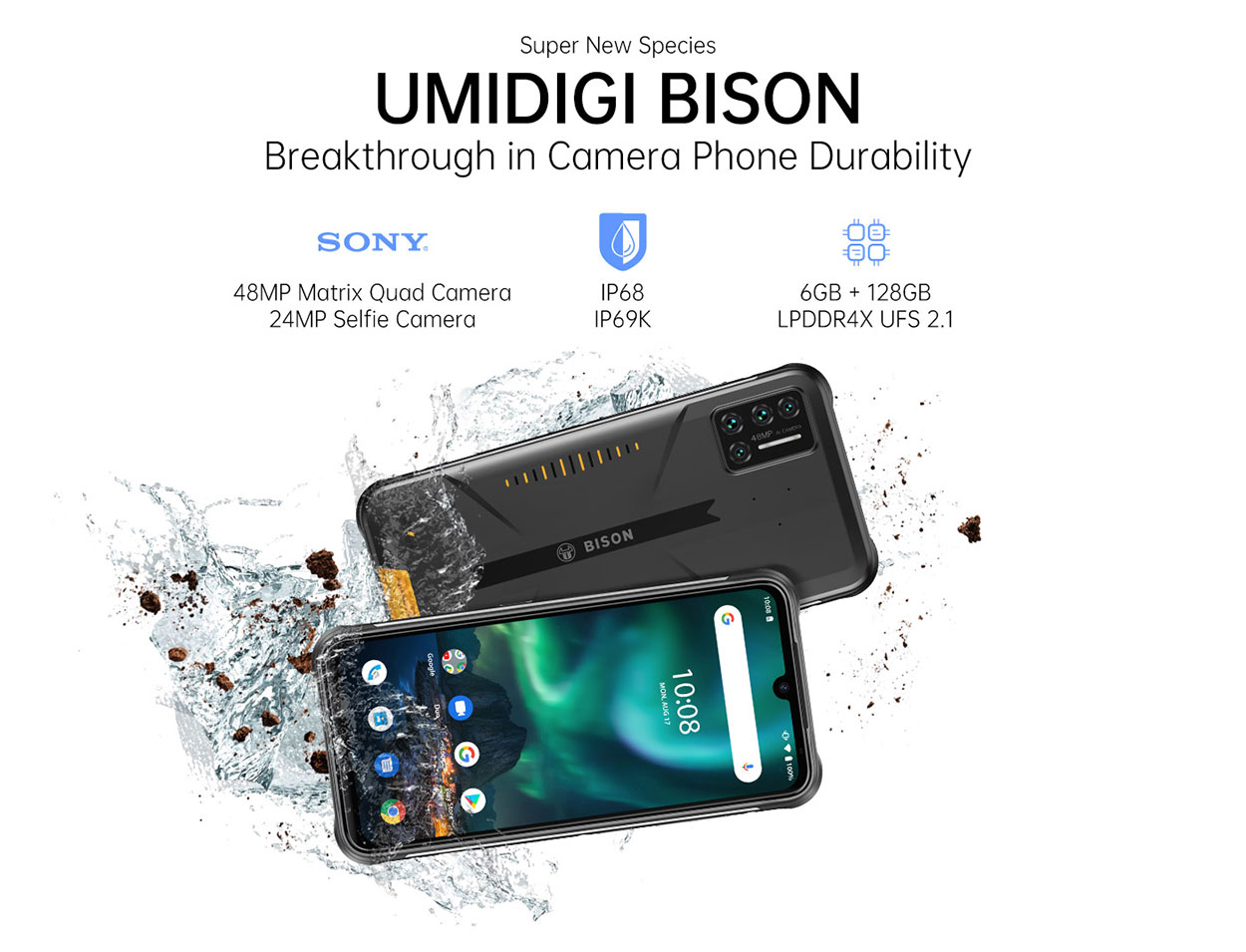 UMIDIGI SG官方| BISON | NFC谷歌支付| IP68 IP69K防水| 6.3 FHD 2K显示屏| 48MP索尼相机| 5000mAh SG 3针18W快速充电